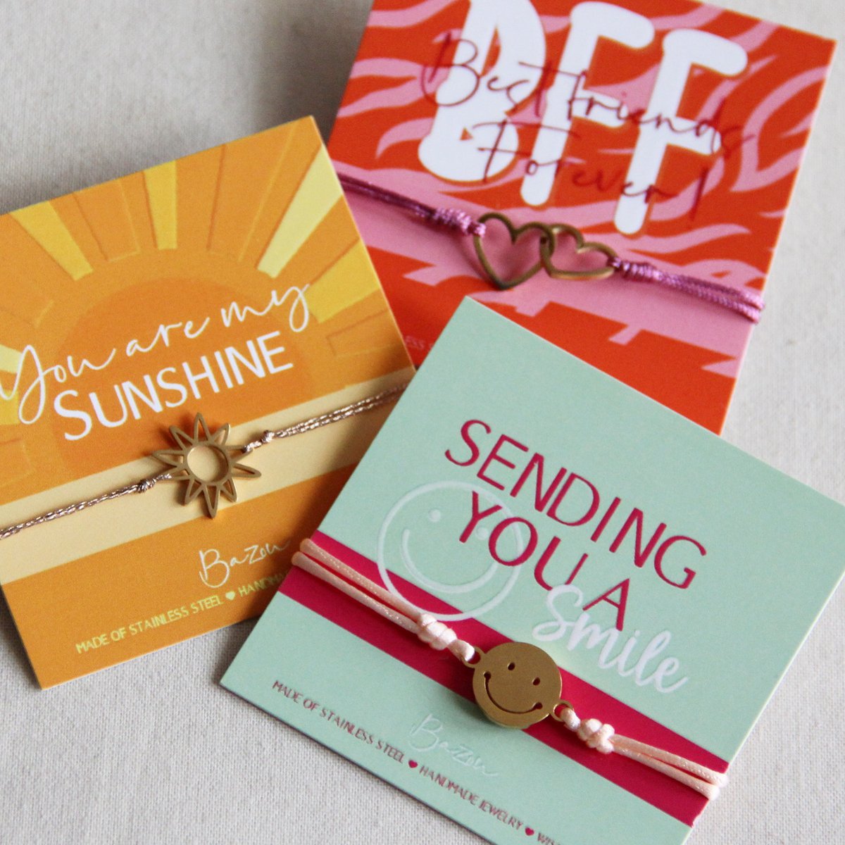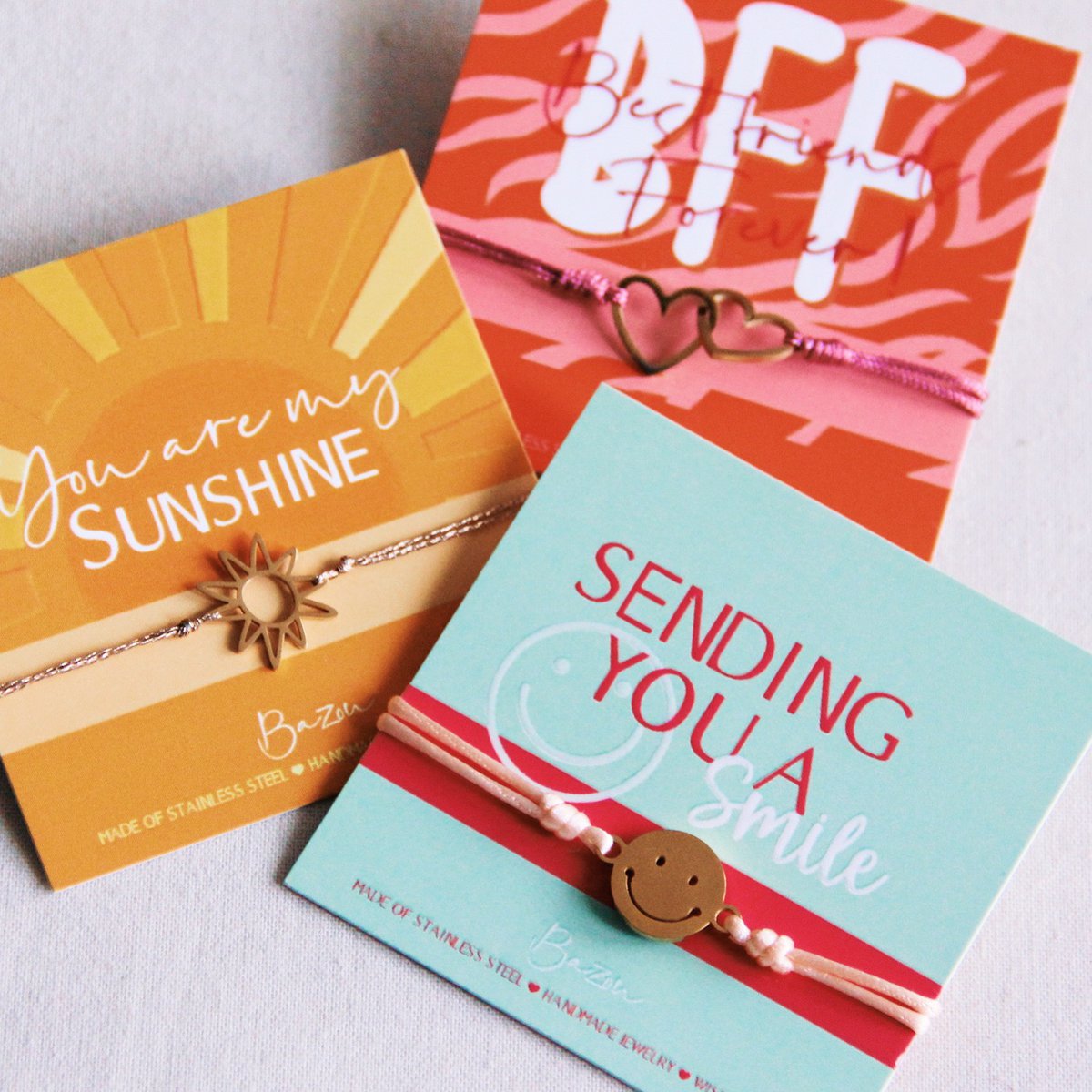 BAZOU Hartpatroon geweven armband - Coral/cognac -