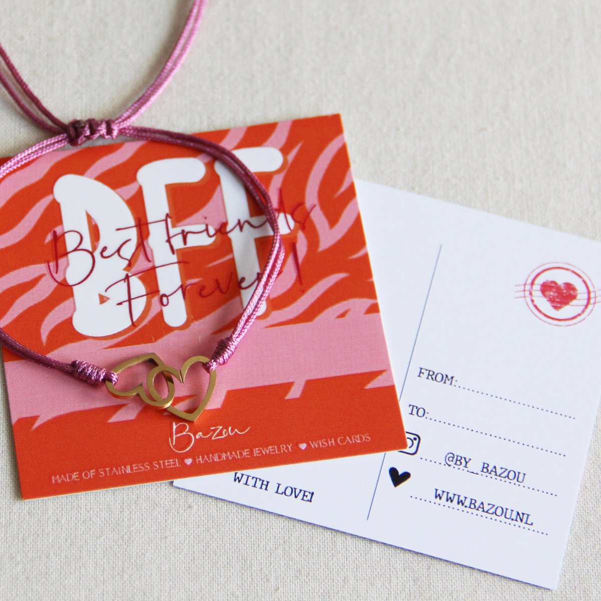 BAZOU hoepel oorbellen met fantasyhart - felroze/goud -